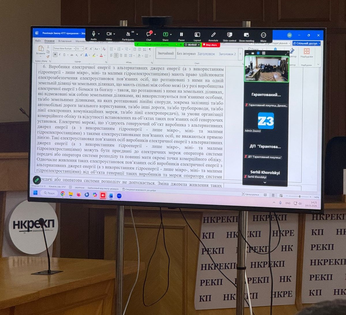 Засідання відбулися за участі представників Міністерства енергетики України, НЕК «Укренерго», операторів систем розподілу та ключових учасників ринку електричної енергії. Основною метою зустрічей стало обговорення практичних аспектів реалізації положень нового Закону, а також визначення ключових напрямів підготовки змін до нормативно-правових актів Регулятора, необхідних для його належної імплементації.