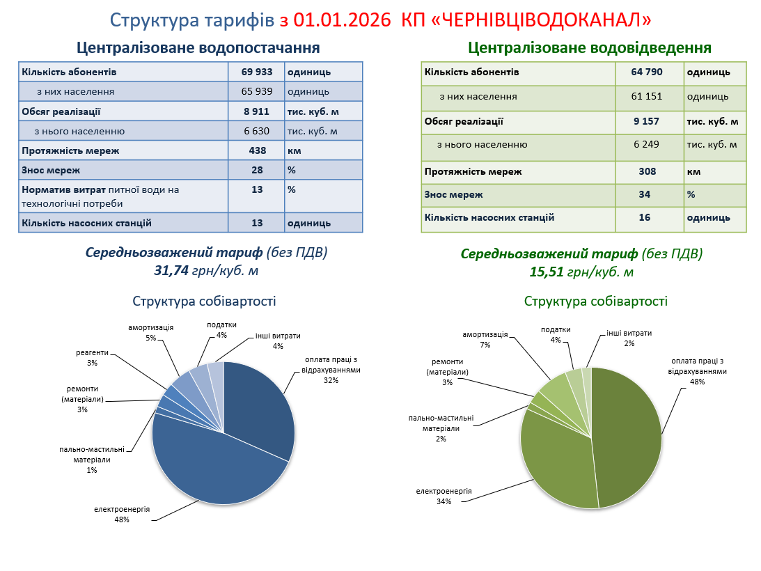 Структура тарифів КП «ЧЕРНІВЦІВОДОКАНАЛ»