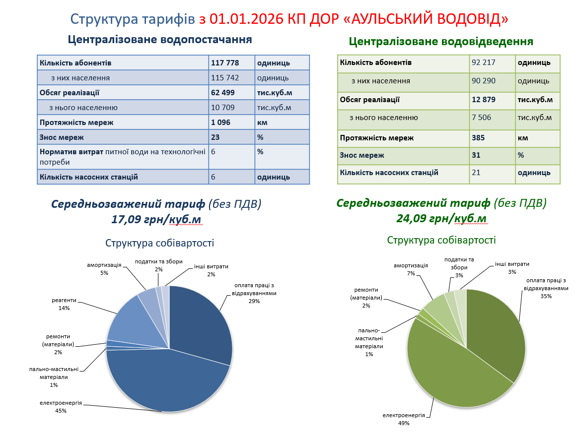 Структура тарифів КП ДОР «АУЛЬСЬКИЙ ВОДОВІД»