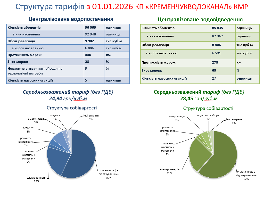 Структура тарифів КП «КРЕМЕНЧУКВОДОКАНАЛ»