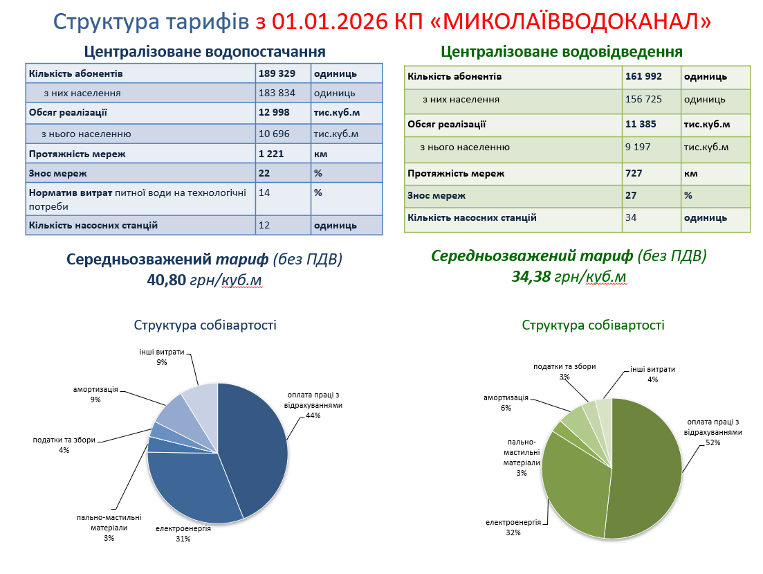 Структура тарифів КП «МИКОЛАЇВВОДОКАНАЛ»
