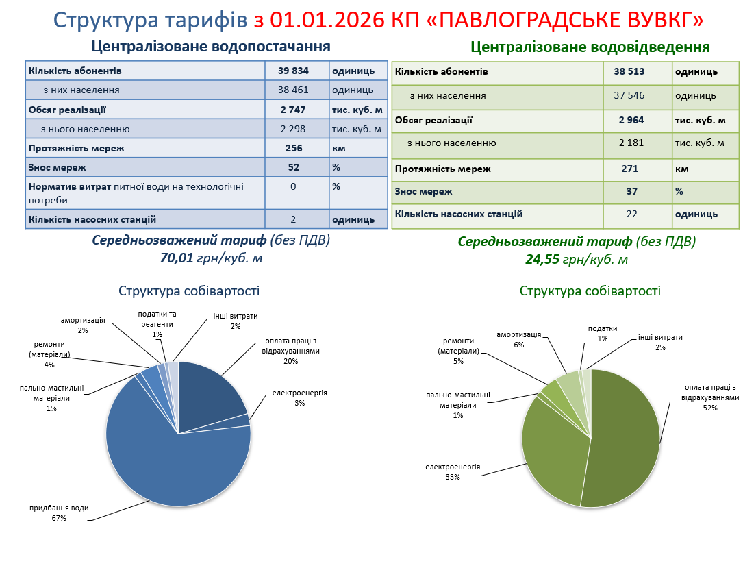 Структура тарифів КП «ПАВЛОГРАДСЬКЕ ВУВКГ»