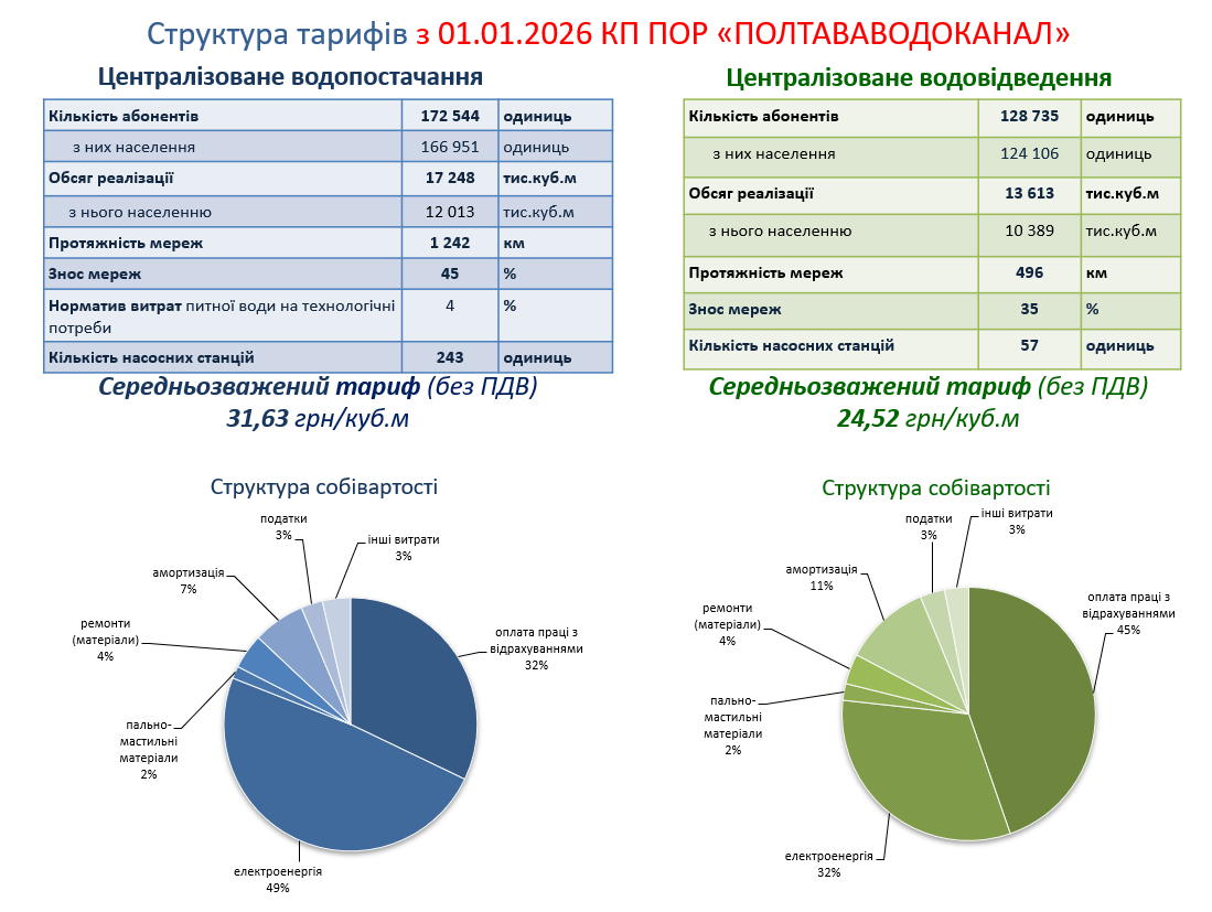 Структура тарифів КП ПОР «ПОЛТАВАВОДОКАНАЛ»
