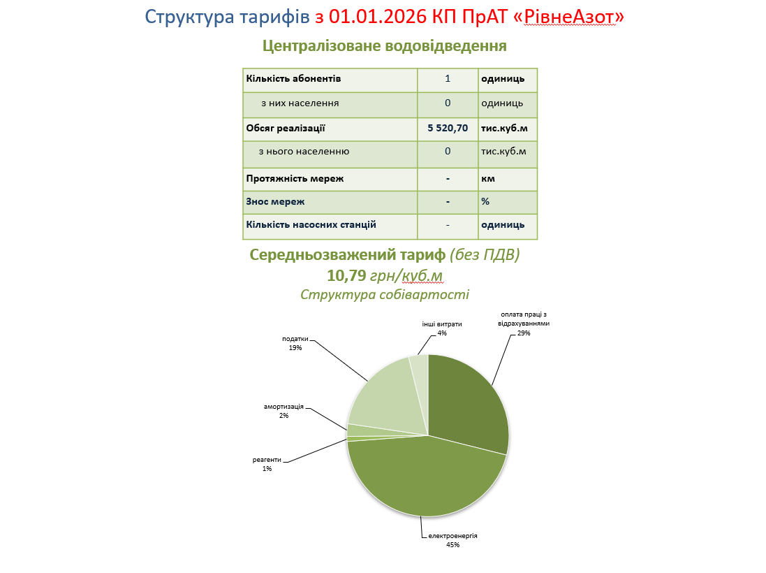 Структура тарифів КП ПРАТ «РІВНЕАЗОТ»