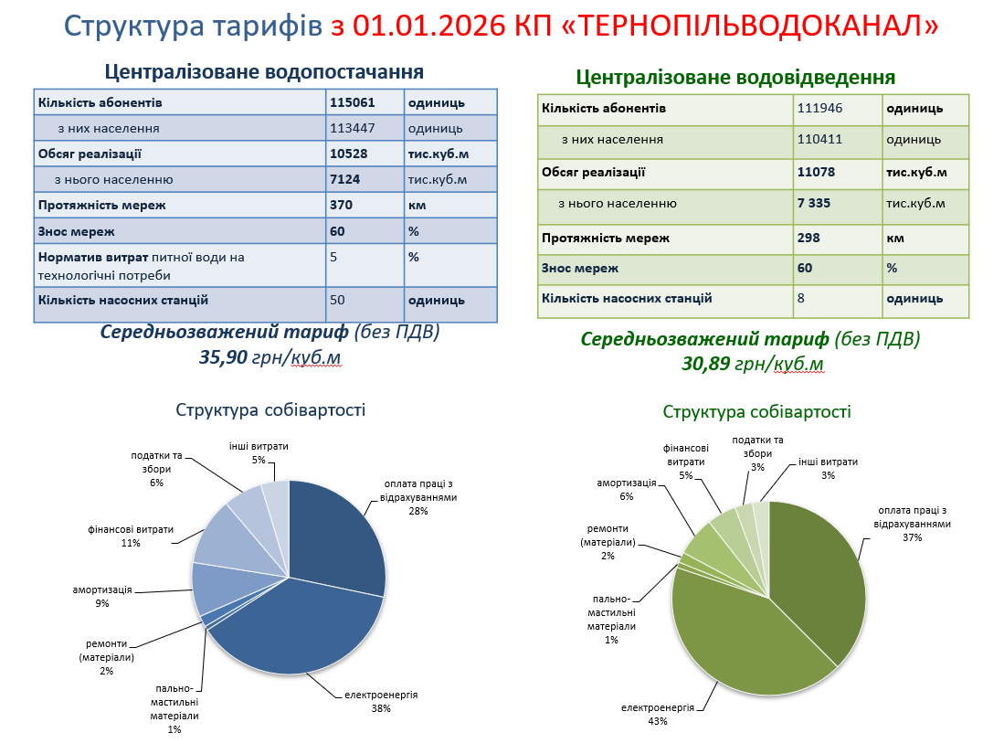 Структура тарифів КП «ТЕРНОПІЛЬВОДОКАНАЛ»