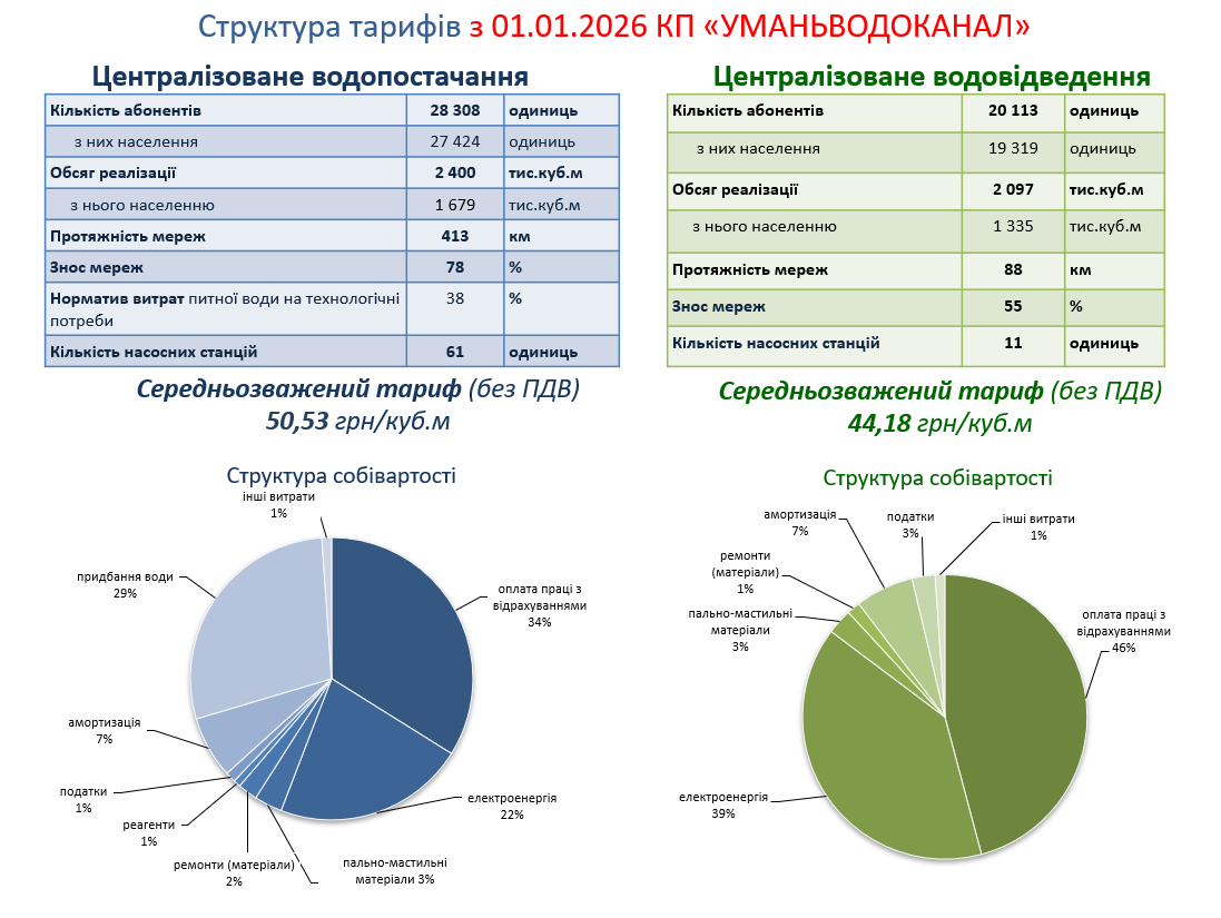 Структура тарифів КП «УМАНЬВОДОКАНАЛ»