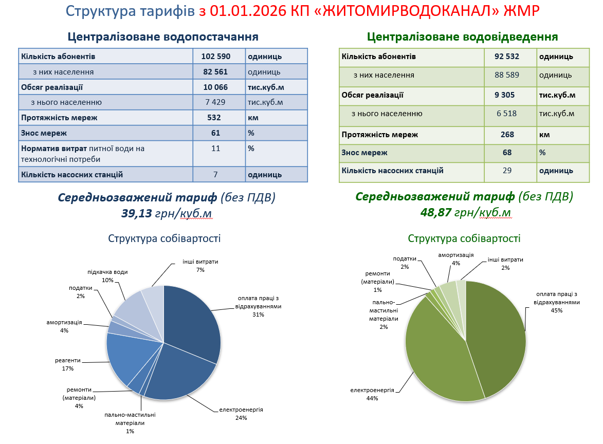 Структура тарифів КП «ЖИТОМИРВОДОКАНАЛ» ЖМР