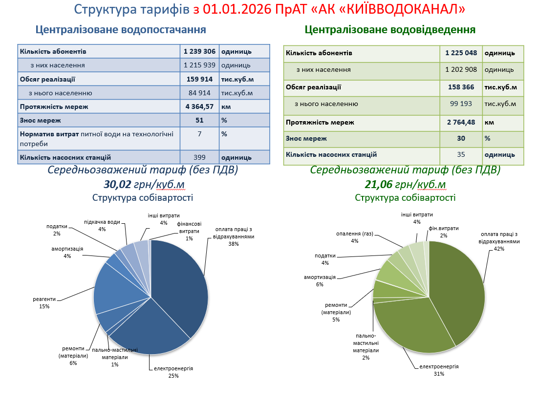 Структура тарифів ПАТ «АК «КИЇВВОДОКАНАЛ»