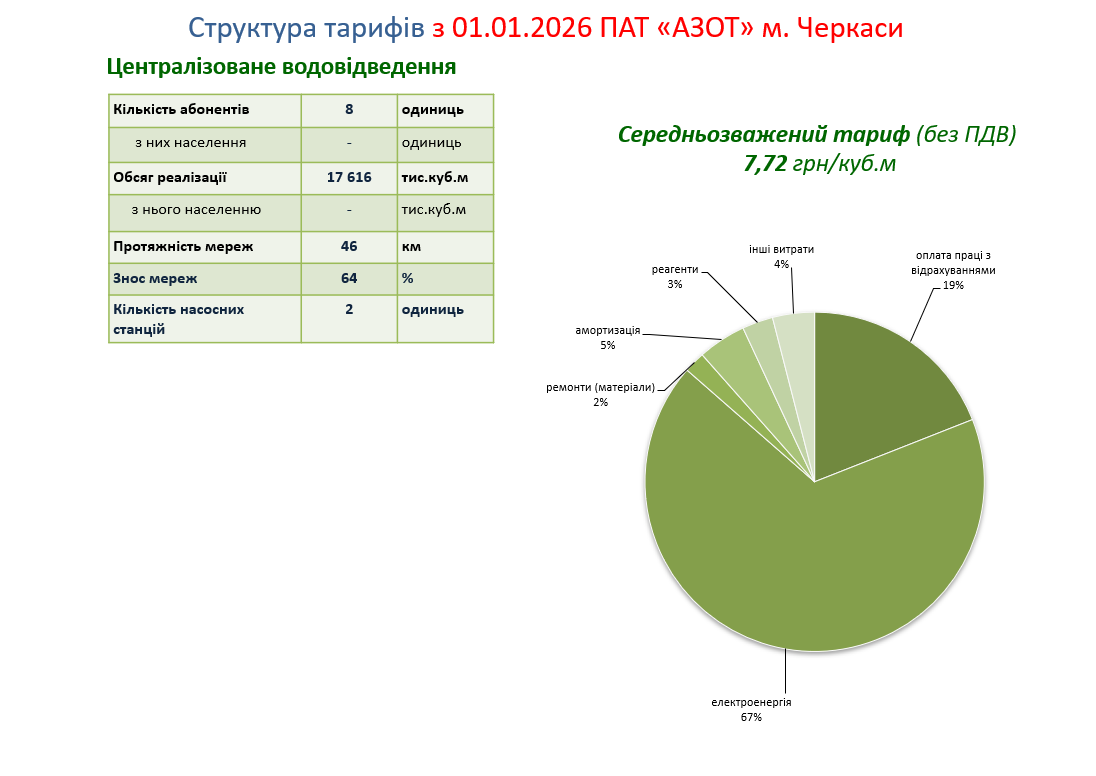 Структура тарифів ПАТ «АЗОТ» м. Черкаси