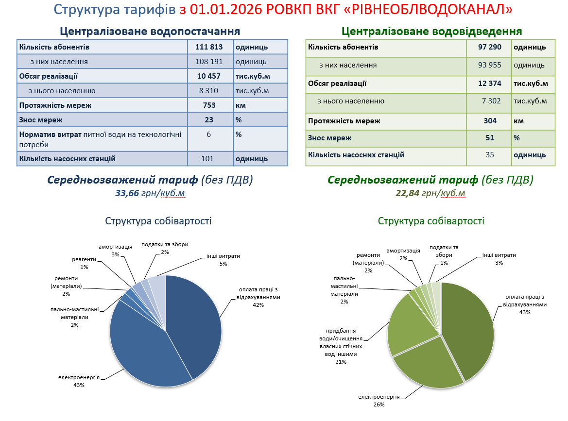 Структура тарифів РОВКП ВКГ «РІВНЕОБЛВОДОКАНАЛ»